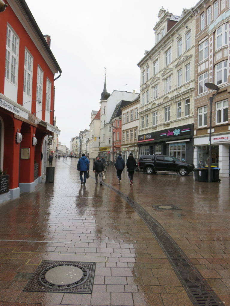 In Flensburg hatte ich jedenfalls eine gute Zeit. Gestern Vormittag gingen wir in die Stadt. Das Café K. verkauft Getränke und Speisen zum Mitnehmen. Ob sie sich damit in den nächsten Wochen über Wasser halten können? Wir kauften aus Solidarität und weil wir Lust darauf hatten, das französische Frühstück mit Croissant, Brioche und Maronencreme, dazu einen sehr leckeren Galao. Auf dem Markt war Betrieb, aber bis auf Drogerien, Supermärkte und Apotheken waren alle Läden geschlossen. Viele hatten Schilder in die Fenster gehängt und boten Lieferservice an. Die Leute lassen sich was einfallen. Not macht erfinderisch.