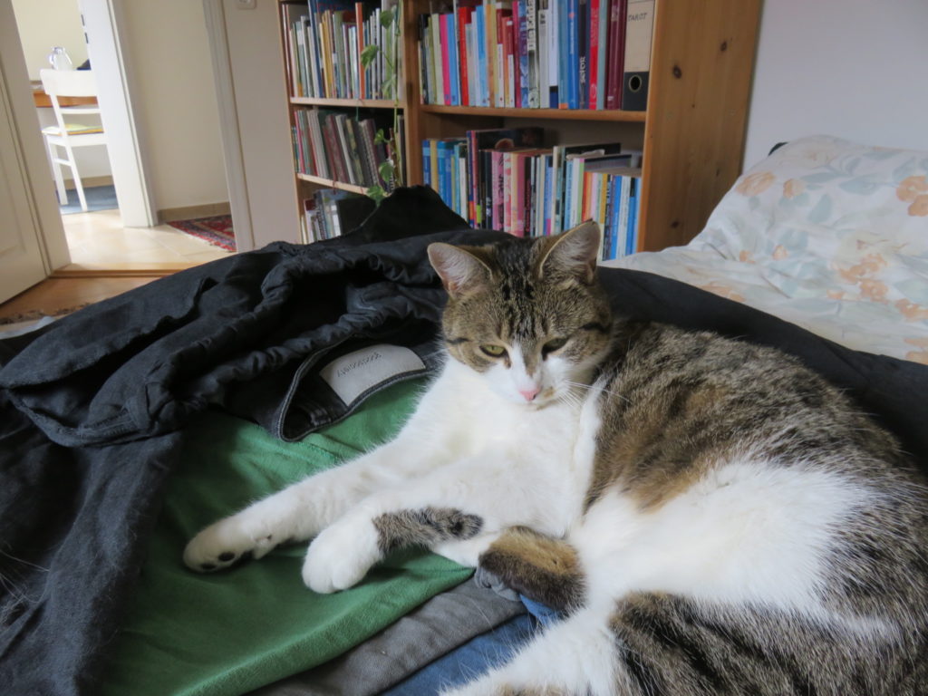 Ich bin ansonsten meistens zu Hause. Hier mache ich das, was ich jeden Tag mache, also die Alltagsroutinen. Ansonsten bin ich für meine Verhältnisse richtig faul, dümpele herum, schaue aus dem Fenstern, hänge meinen Gedanken nach, lese, stricke, streichele die Katze. Gestern habe ich Torta della nonna gebacken, mein dritter Versuch. Und dieses Mal gelang es mir endlich, den Teigdeckel heil auf die Vanillecremefüllung zu befördern. So hilft die Kontaktsperre mir, meine Konditorinnenkünste zu perfektionieren