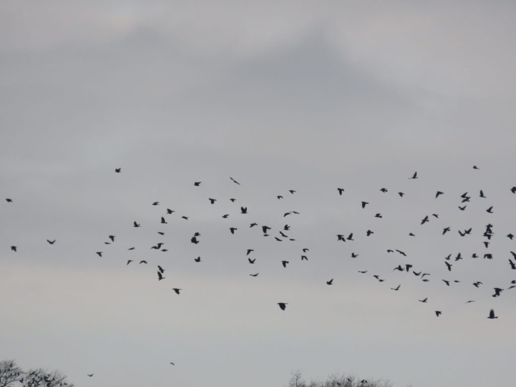 Der Lockdown stört mich wenig. Ich fahre einmal in der Woche in die Stadt und gebe wenig Geld aus. Der Französischunterricht fängt ab nächste Woche per Zoom an, besser jedenfalls als kein Unterricht. Ich mache Yoga im Wohnzimmer (natürlich ist es in der Gruppe schöner) und fühle mich danach gelassener und mehr in meinem Körper. Ich bedanke mich beim Regen und bei den Bäumen, daß sie da sind, ich sehe den Vögeln an der Futterstelle zu und lausche den Gänsen, Kranichen, Kolkraben und Singschwänen und finde, daß ich ein glücklicher Mensch bin. Und ich habe mit vielen sehr freundlichen Menschen zu tun, das fällt mir immer wieder , auf, ob in der Bahn, am Telefon, in den wenigen Geschäften, die noch geöffnet haben. Sogar der junge Mann von der Krankenversicherung meiner Mutter, mit dem ich heute telefonierte, hat sich so nett und ausgiebig mit mir unterhalten, daß ich ihm am Schluss aus ganzem Herzen dafür dankte. Ich weiß nicht, ob das an Corona liegt. Wie auch immer und bei all dem Chaos, den Ungereimtheiten der Herrschenden, ich glaube immer noch, daß die Erde uns das Virus geschickt hat und daß sich etwas verwandeln will.