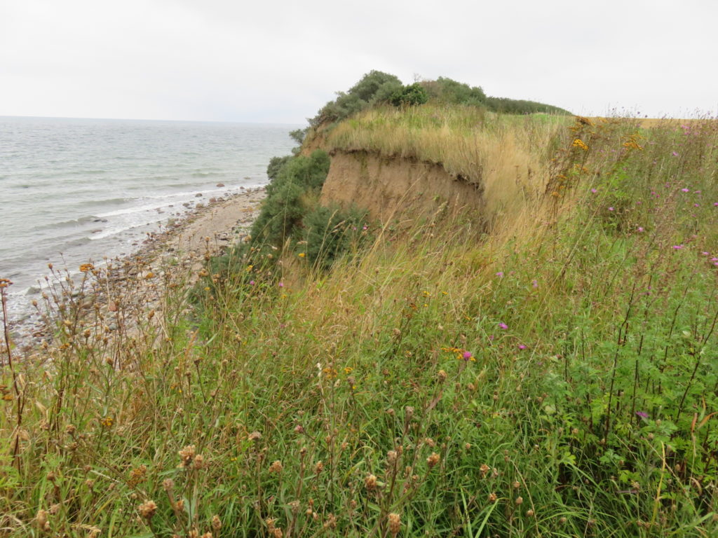 Freude macht mir, daß die Spinnen ihre schönen Netze überall aufhängen. Und der Besuch meiner Kinder und Schwiegerkinder hat mir auch Freude gemacht. Am Donnerstag gab es einen schönen Besuch des Selenter Badehauses mit sauleckerem Kuchen und Piadine. Am Samstag regnete es durchgehend und der Tag verlief faul mit Stricken, Lesen, Essen, Reden, Rumsitzen. Am Samstag fuhren M. und ich an die Ostsee und gingen vom Sehlendorfer Strand bis zur Steilküste am Eitz. Es ist schön in einer Familie zu sein und auf so engem Raum gut miteinander klar zu kommen.