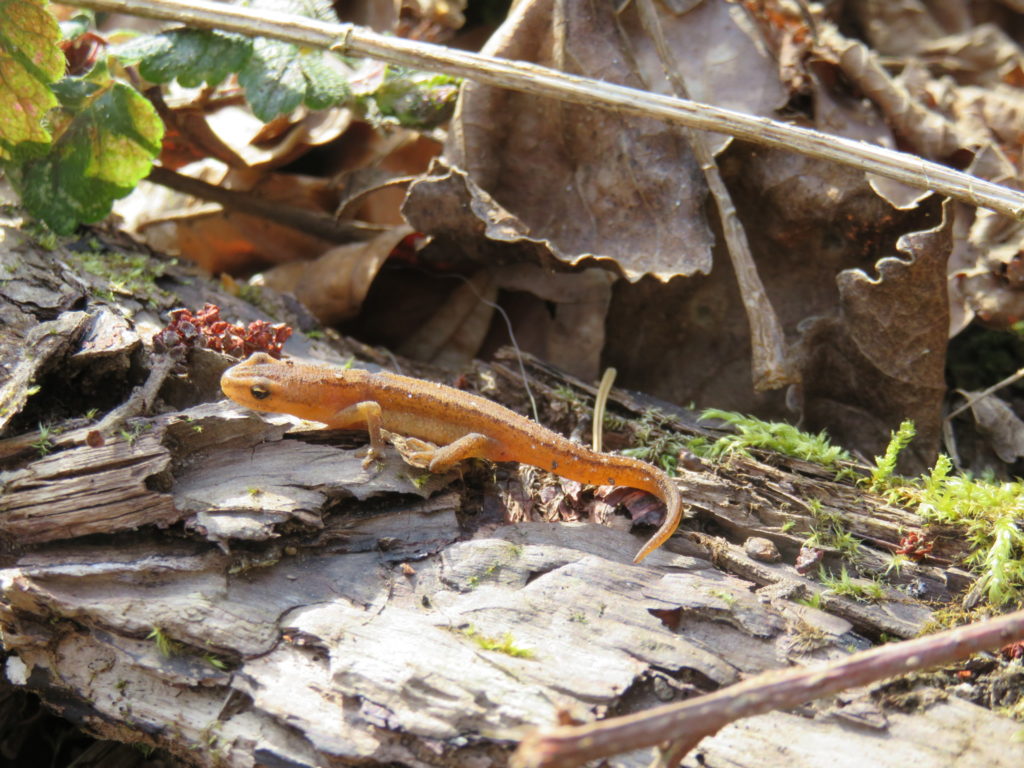 Vor einigen Tagen saß ich in der Sonne und sah den Bienen beim Fliegen und Polleneintragen zu. Die Vögel sangen aus vollen Kehlen, hoch am Himmel zogen drei Seeadler ihre gemächlichen Kreise – ich konnte ihre weißen Schwanzfedern im Licht deutlich erkennen – , eine Eidechse kroch aus dem Steinhaufen und setzte sich auf einen liegenden Baumstamm, so daß ich sie richtig lange betrachten konnte. Es war so ein großer Frieden in mir, wie ich ihn lange nicht mehr gefühlt habe. Wenige Tage später streifte ich durch die Landschaft, um Pflanzen zu entdecken. Ich hockte am Bachlauf im sumpfigen Wald bei den Teichen und schaute mir das noch nicht aufgeblühte Milzkraut und die Bachbunge an, da hörte ich ein Knistern und sah ein sehr kleines Tier, das aus dem trockenen Laub kroch. Ich blieb ganz still und erkannte einen kleinen Molch. Ich glaube, den letzten hat mir mein Vater gezeigt, als ich ein Kind war. Es lohnt sich, ganz ruhig in der Natur zu sein, dann hat eine die Chance, die wilden Wesen zu sehen, die sonst die Menschen scheuen.