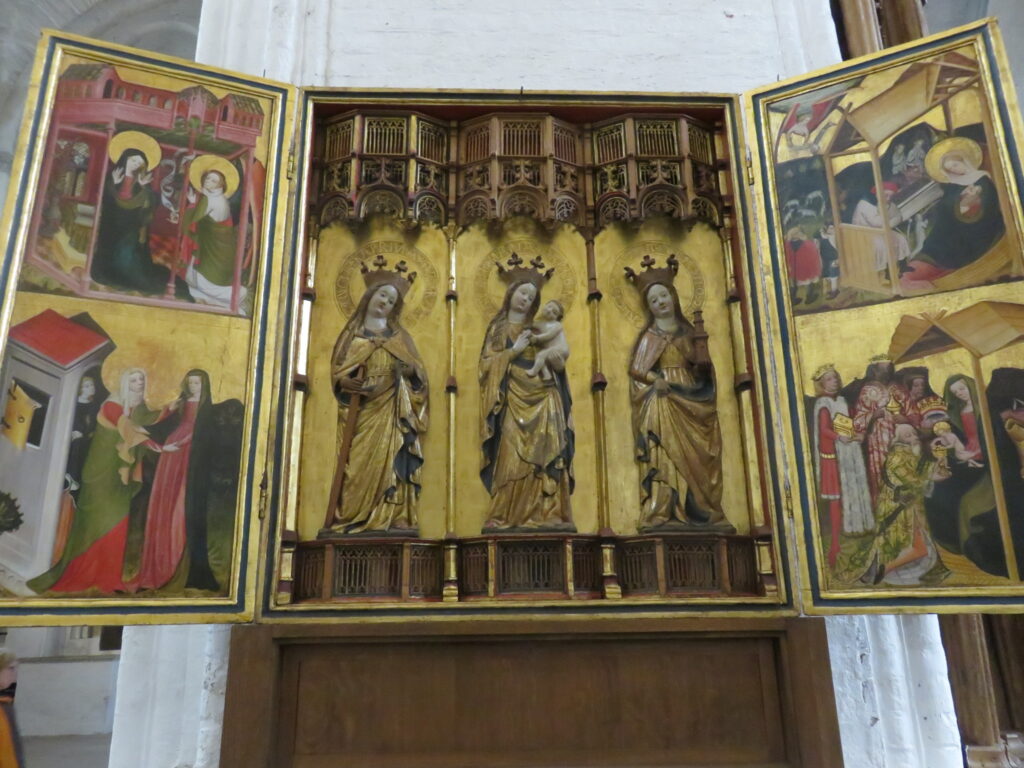 Einen geplanten Besuch der Edmundsklamm in Tschechien, die ganz in der Nähe ist, brachen wir vorzeitig ab. Der Grenzort Hřensko schien nur aus Duty free-Shops und Parkplätzen zu bestehen. Asiatisch aussehende Männer kassierten die Gebühren und betrieben Stände, an denen allerlei Ramsch verkauft wurde. Der Zugang zur Edmundsklamm war gesperrt. Scharen von Touristen wälzten sich den Berg hoch. Wir hatten genug und fuhren zurück, nachdem wir sehr günstig getankt hatten. An der Grenze wurden wir von deutscher Polizei angehalten, die ins Auto schaute und uns dann weiterfahren ließ. Vielleicht wollten sie schauen, ob wir Flüchtlinge nach Deutschland schmuggeln. Wir waren später ein zweites Mal in Tschechien, diesmal zu Fuß. Unser Vermieter hatte uns eine Wanderung auf den Děčínský Sněžník (Hoher Schneeberg) empfohlen. Der ist der höchste Berg des Elbsandsteingebirges und auf seinem Gipfelplateau gab es eine atemberaubende Sicht auf die böhmischen Wälder und die Berge im deutschen Gebiet. Dann wanderten wir gefühlt ewig lange zum Restaurant Kristin Hrádek. Es gab große Schilder, auf denen es angekündigt wurde: zunächst mit 2 km, der nächste Wegweiser kündigte dann an, daß es nur noch 4 km seien. Wir fühlten uns ziemlich verarscht, aber wir fanden es schließlich. Der Kellner indentifizierte uns beim ersten Blick als Deutsche. Keine Ahnung, woran er das gesehen hat. Unser Vermieter hatte uns ein paar tschechische Worte beigebracht. Bei mir ist davon nur dobrý den (Guten Tag) und ahoj (Hallo) hängen geblieben. Mehr brauchte ich auch nicht, da die Tschechen, mit denen wir zu tun hatten, alle Deutsch sprachen. Diese Tour war mit neun Stunden unsere längste, nach Maatins Berechnung sind wir gut 20 km gegangen, bergauf und bergab.
